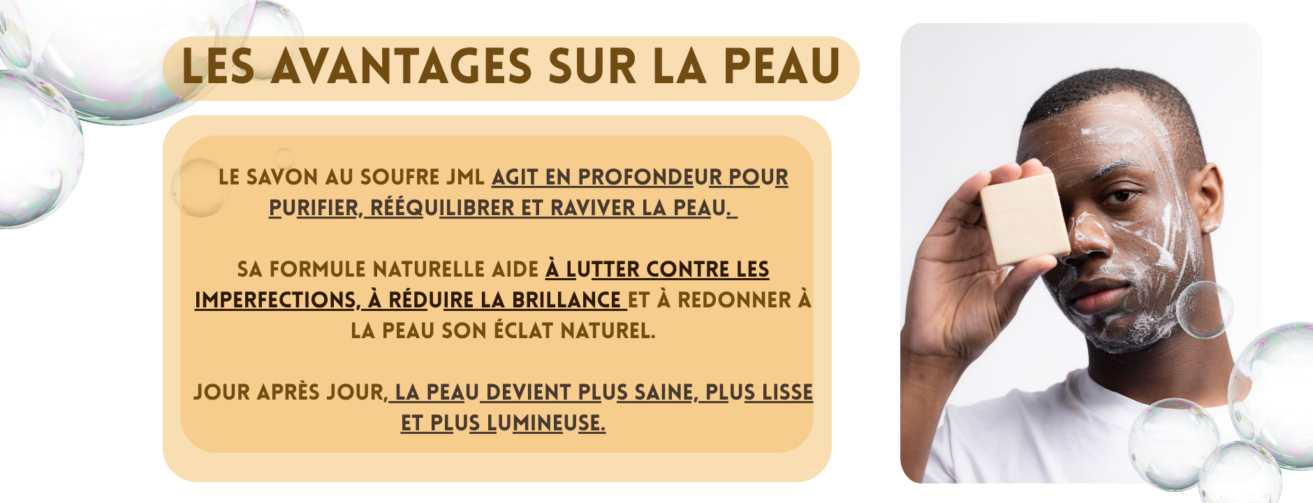 Le Savon au Soufre JML est un soin purifiant et rééquilibrant conçu pour les peaux sujettes aux imperfections.