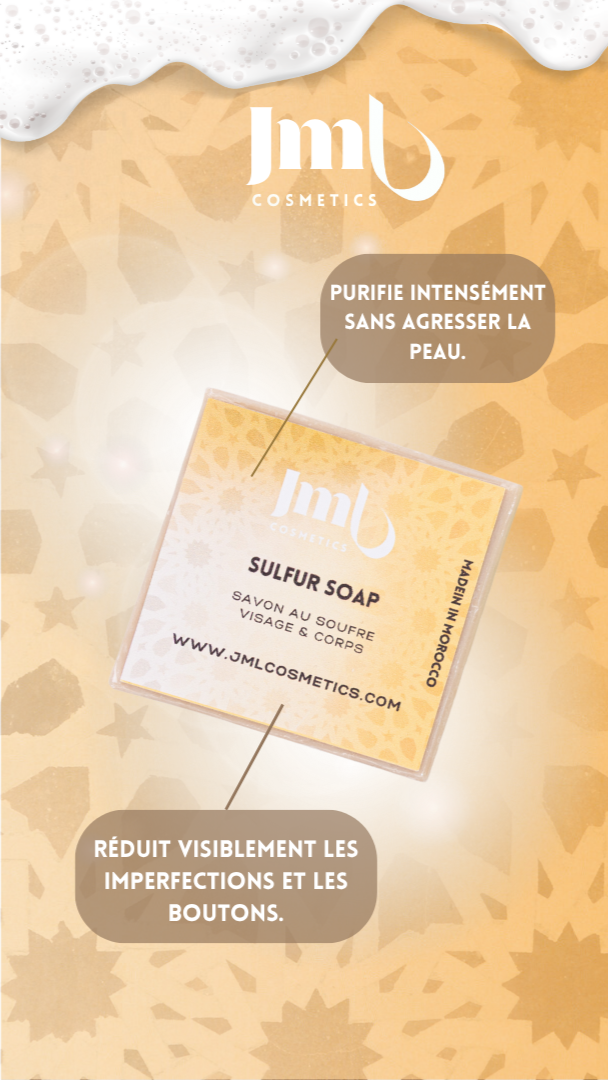 Naturel, efficace et inspiré du savoir-faire marocain, le Savon au Soufre JML révèle jour après jour la pureté et la vitalité de votre peau.